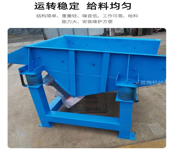 敞开式座式电机振动给料机当给料槽振动的加速度垂直分量大于重力加速度时,槽中的煤被抛起,并按照抛物线的轨迹向前跳跃运动,抛起和下落在瞬间完成,由于激振源的连续激振,绐煤槽连续振动,槽中的煤连续向前跳跃,以达到给煤的目的。 振动给料机振动给料机又称振动喂料机。振动给料机在生产流程中,可把块状、颗粒状物料从贮料仓中均匀、定时、连续地给到受料装置中去,勇梅机械电磁振动给料机 在交流电源的频率下,每分钟进行3000次往复振动。 由于槽体的水平方向与激振力作用线的方向成一定角度,双电机高效振动给料机因此槽体中的材料沿抛物线的轨迹连续向前移动。 通过调节整流电压的大小,控制激振力的大小,以达到控制电磁振动给料器的进给量的目的。