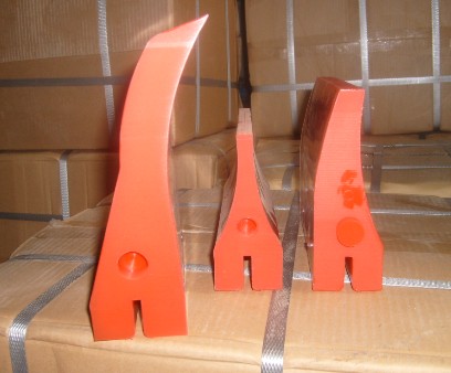 聚氨酯刮刀材料为高分子聚氨酯,磨擦系数低、高耐磨、高强度,具有稳定的刮料效果,防腐蚀、防断裂又不会伤及皮带。适用于电力、冶金、矿山等各种行业输送带。使用寿命为合金橡胶清扫器的3~4倍。