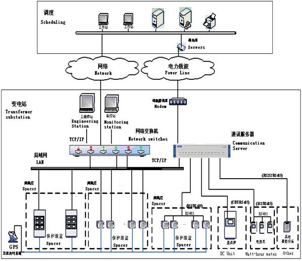 通讯系统具有以太网、串口通讯能力,监控系统与调度SCADA系统能实现同步通讯,选用通讯规约一般为部颁国标101、104、CDT/1801等协议。
