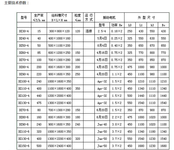 DZ系列振动给料机是一种新型、节能通用给料设备。该机采用新型振动电机做激振源,具有结构简单、紧凑,使用及维修方便,给料连续均匀,料槽磨损小,使用寿命长等优点,常与振动输送机、振动筛、斗式提升机、破碎机等配套使用,用于自动配称、定量包装、自动控制的工艺流程中,是冶金、矿山、煤炭、电力、建材、化工、机械等行业理想的给料设备。