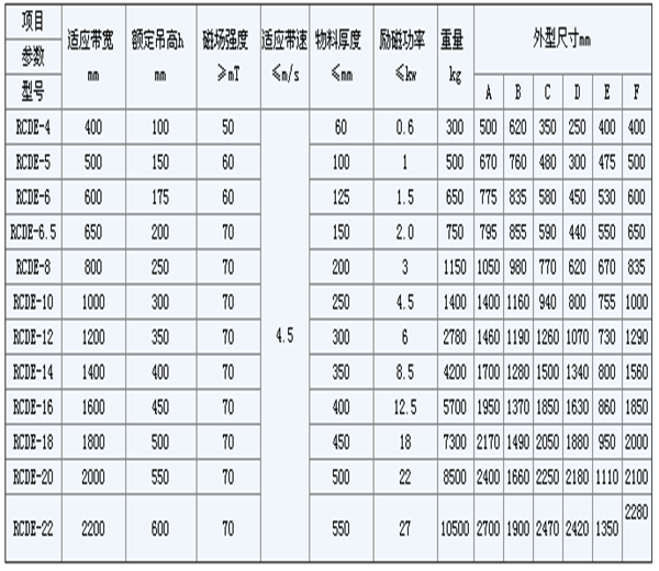 RCDE系列油冷式电磁除铁器主要技术参数: