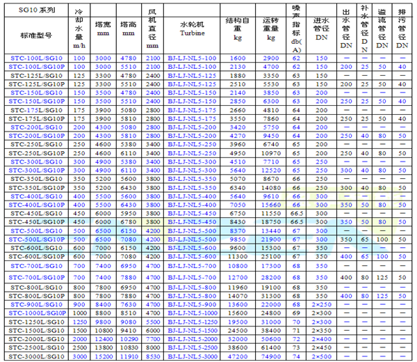STC工业型钢结构逆流式方塔性能参数表