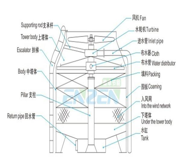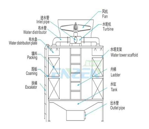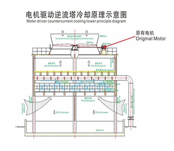 1)改造前:电力驱动风机型冷却塔原理示意图
