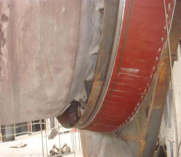 水泥回转窑大修中的窑头、窑尾密封技术改造,以及具有高效节能性和技术领先性的密封结构和材料,使用后有密封效果良好、防止物料外漏、节能降耗等特点。回转窑是在负压下运行的。一般而言,热端负压约为20Pa~30Pa,冷端负压约为250Pa~300Pa。其运行过程中,若热端(窑头)漏风,就会降低窑二次风温,造成热损失;若冷端(窑尾)漏风,不仅燃料不能充分燃烧,且会影响窑内通风,使热耗增加,影响熟料的产、质量,同时冷端废气中含有大量粉尘状物料,由于倒风而外溢,既污染了环境,又对岗位工人的健康造成伤害。窑密封效果不佳引起的漏风、漏料等情况