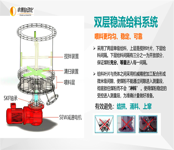 - 传统的煤粉计量设备存在给料不稳、锁料不严,计量不准的三大问题,秤体计量误差远高于1%,达不到0.5%的计量要求。
