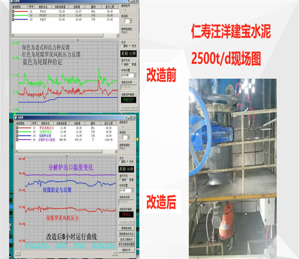 - 由于煤粉秤的不稳定,温度变化大,使得中控窑操作员随时要根据窑尾分解炉出口温度调整给定量,而给定量的调整 又反过来加剧煤粉秤的不断调整。